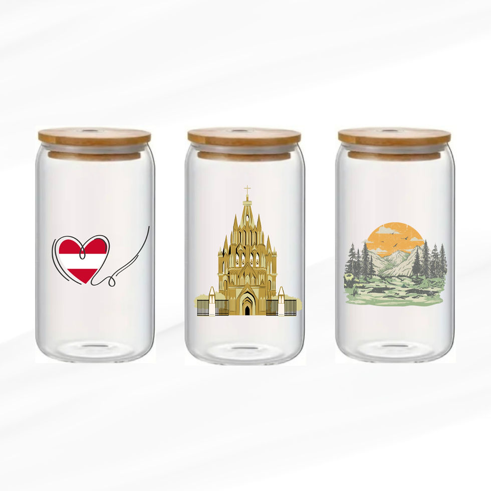 Add charm and personality to your daily routine with our beautifully sublimated glass jars. Perfect for iced coffee, smoothies, juices, and more — each jar combines style and function in one. Made from high-quality frosted glass and paired with a bamboo lid and reusable straw, they’re durable, eco-friendly, and designed to stand out.